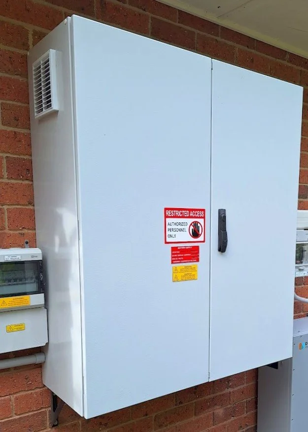 Weather‑Proof Cabinets and enclosures – High-quality Powder‑coated IP54/IP65 outdoor cabinets with integrated ventilation and insect screens. Certified battery enclosures for outdoor or exposed installations.